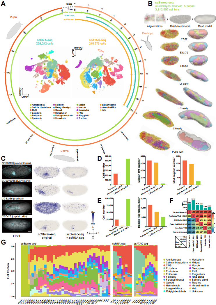圖2-果蠅發育的單細胞時空多組學圖譜