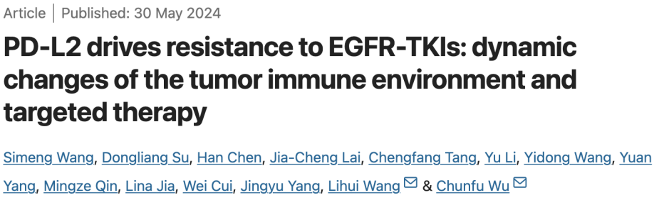 - PD-L2 通過影響腫瘤免疫環境在介導 EGFR-TKIs 耐藥中發揮關鍵作用
