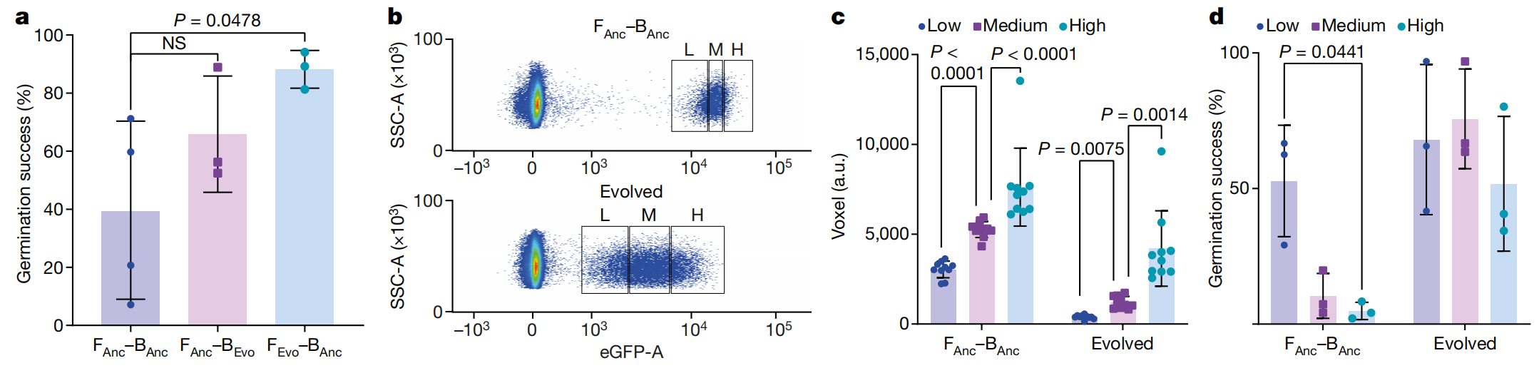 該研究將細菌 Mycetohabitans rhizoxinica?植入真菌?Rhizopus microsporus?中,發現這種細菌能夠在真菌細胞中繁殖并垂直傳遞給后代。通過適應性實驗室進化實驗,研究人員發現這種人工誘導的內共生關系可以通過正向選擇來提高其穩定性和適應性。進化后的真菌產生了與天然宿主相關的代謝產物,證明了通過人工誘導的內共生關系可以將代謝功能轉移到新的宿主中。