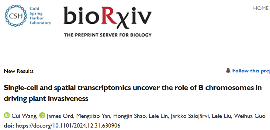 英文標題:Single-cell and spatial transcriptomics uncover the role of B chromosomes in driving plant invasiveness