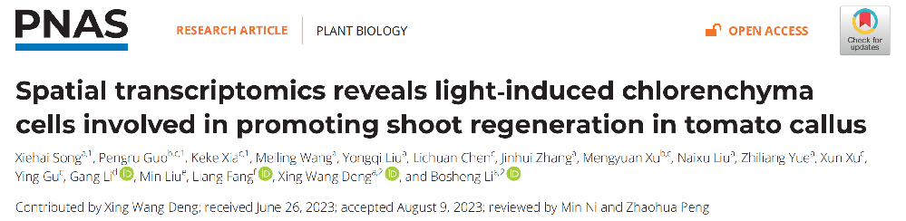 中文題目:空間轉錄組測序揭示番茄愈傷組織芽再生的分子機制