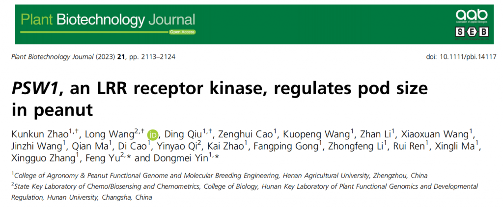 PSW1編碼一個LRR – RLK蛋白激酶,等位基因PSW1HapII賦予了PSW1更高的表達水平和對其輔助受體AhBAK1更強的親和力,以上調PSW1 – based途徑,調節花生莢果大小。此外,PSW1HapII的過表達增加了多種植物的種子/果實大小。