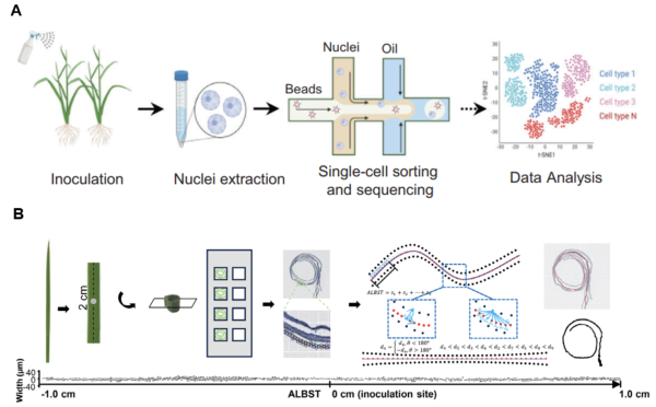 單細胞組學和時空組學是近年來生命科學領域的重要技術突破,它們在細胞異質性解析、動態過程研究和細胞間相互作用分析方面具有重要優勢,為生命科學研究帶來了全新的視角和深度。水稻稻瘟病是世界上發生嚴重的真菌病害之一,水稻在面臨稻瘟菌侵染時會激活動態免疫,因此挖掘水稻特異免疫基因對于抗稻瘟病菌侵染至關重要。