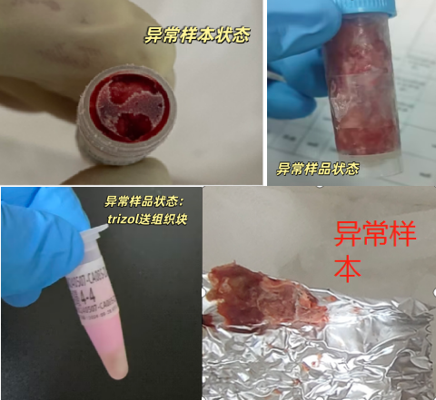 7)凍融組織: 組織凍存后,一旦凍融,核酸降解概率大于 80%,幾乎不可能提取成功,此類組織不建議送樣。請各位老師送樣前注意組織保存狀態, 確保組織未發生過凍融情況
