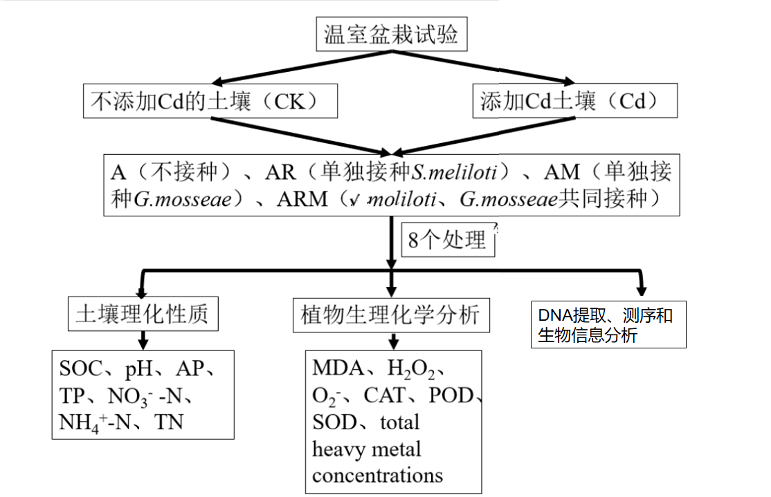 根瘤菌和叢枝菌根真菌(AMF)是重要的共生微生物,對生長在金屬污染土壤中的植物有利。然而,目前仍不清楚接種的微生物如何影響根際微生物群落,或者根際微生物群落的后續變化是否有助于提高金屬脅迫下的植物抗性。
