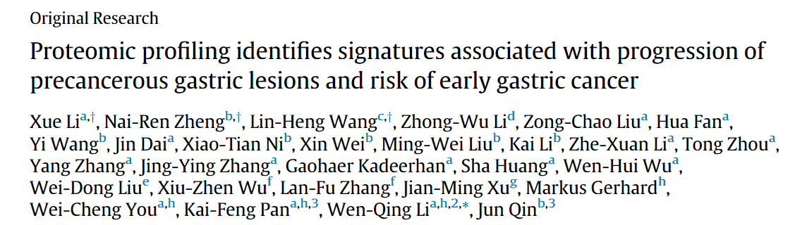 中文題目:借助蛋白質組學分析與胃癌前病變和早期胃癌相關的特征