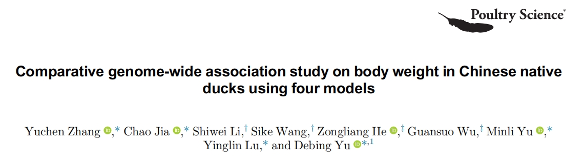 鴨子為人類消費提供肉、蛋、羽毛等產(chǎn)品,中國是世界上最大的鴨肉消費國。金陵白鴨做為我國優(yōu)質(zhì)的選育品種,具有優(yōu)良的生長速度和肉質(zhì)品質(zhì)。從孵化到上市的整個時期,鴨子的體重逐漸增加,這一過程由復(fù)雜的生理和生化機制調(diào)控,器官和骨骼的發(fā)育是體重增加的關(guān)鍵因素,全基因組關(guān)聯(lián)分析(GWAS)是許多牲畜和家禽物種研究生長和發(fā)育的遺傳機制的常用方法,然而,現(xiàn)有的一些關(guān)于鴨生長發(fā)育性狀的GWAS研究測序深度較低,發(fā)現(xiàn)的候選基因很少。