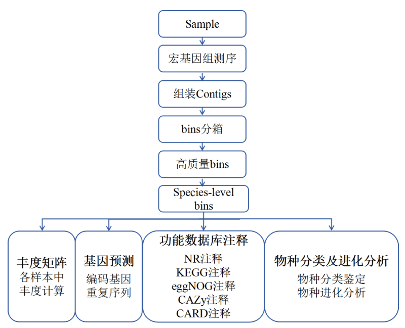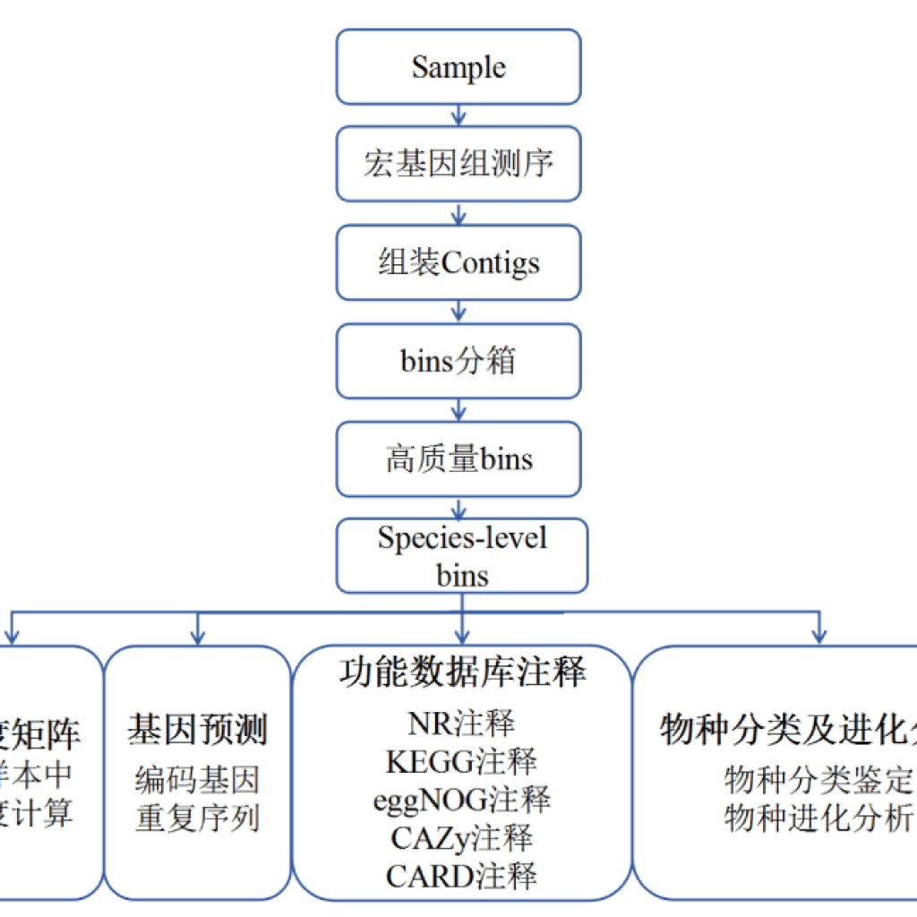 宏基因組測的是一個環境中的全部微生物的基因組信息,以獲得群落中全部的物種信息和功能信息,而Binning可以把宏基因組數據中來自同一菌株的序列聚到一起,得到一個菌株的基因組,對不同的菌株進行分類鑒定。Binning分析使我們得以洞察這些無法在實驗室培養獲得的菌株的生態適應機制、營養互作機制和新陳代謝功能等,可以研究在環境中起重要作用的微生物、進化機制、及其與宿主的互作機制等。