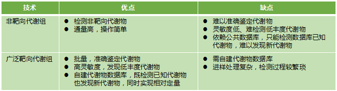 非靶向代謝組和廣靶代謝組是目前代謝組學常用的技術。非靶向代謝組是將對照組和實驗組樣本的全部代謝物進行比對,以找出其代謝物的差異。廣靶代謝組是高通量、高靈敏度靶向代謝物檢測技術,提供了定性、定量檢測大批量、低豐度代謝物高效的方法, 有助于全面解析差異代謝物與代謝途徑。