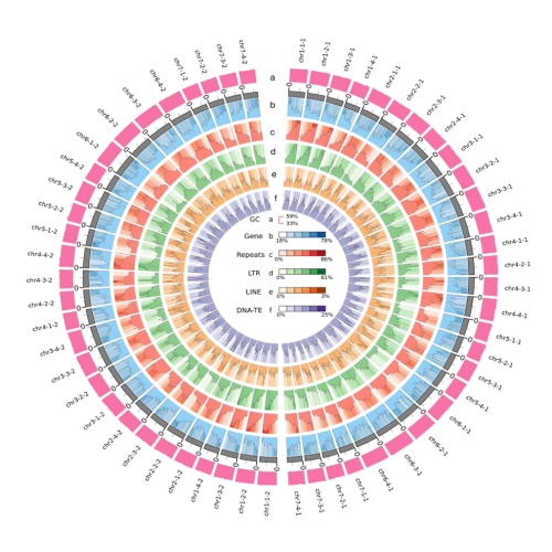 八倍體草莓單倍型基因組特征圖 (Mao JX et al., Horticulture Research, 2023)