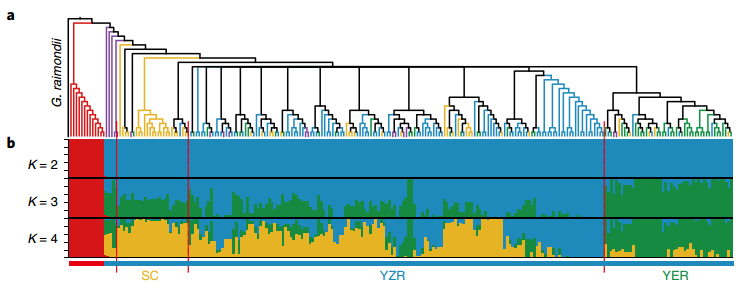 棉花是研究植物多倍化的有價值的資源。亞洲棉(Gossypium arboreum)和草棉(Gossypium herbaceum)的祖先是現代栽培異源四倍體棉花A亞基因組的供體。 本研究中,利用了三代PacBio和Hi-C技術,重新組裝了高質量的亞洲棉基因組,分析了243份二倍體棉花種質的群體結構和基因組分化趨勢,同時確定了一些有助于棉花皮棉產量遺傳改良的候選基因位點。