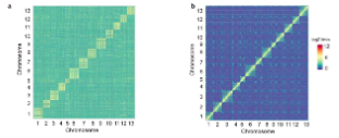 Hi-C染色質構象捕獲技術文庫有效數據比例高,掛載效率高達99%,多倍體物種研究經驗豐富,與三代基因組組裝相結合,獲得染色體水平基因組的。同時進一步提升基因組組裝質量。
