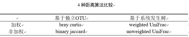 Beta 多樣性分析主要采用 binary jaccard、 bray curtis、 unweighted Unifrac(限細菌)、weighted Unifrac (限細菌)等4種算法計算樣品間的距離,那么這四種算法都有什么差別呢?