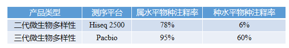 我們對(duì)不同類型的樣品如:土壤、糞便、腸道、水體等,隨機(jī)挑選了30個(gè)項(xiàng)目對(duì)其進(jìn)行物種注釋率進(jìn)行研發(fā)優(yōu)化,目前采用優(yōu)化數(shù)據(jù)庫(kù)及注釋方法的策略,將其種水平平均注釋率提升到60%+。二代注釋到屬和種的平均比例為78%和6%,相同樣品采用三代進(jìn)行注釋時(shí),屬和種水平平均注釋率為95%和60%,注釋結(jié)果提升非常明顯。