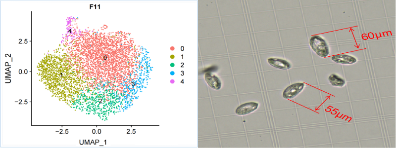 細胞直徑在55-60μm的原生動物,分別進行了DG1000與主流平臺的測試,主流平臺未能成功捕獲,DG1000不但捕獲成功同時得到了客戶比較認可的數據,DG1000細胞直徑成功兼容到60μm,為單細胞測序獲得更多細胞類型提供可能。